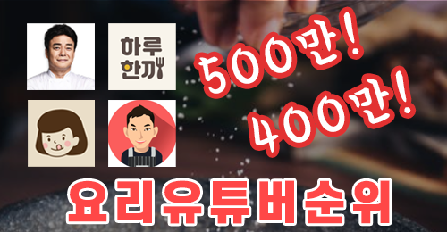요리 컨텐츠로 방송하고 있는 한국 유튜버 순위입니다.